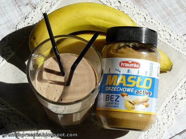 Ważne! Dodając do szejka masło orzechowe, należy wybierać takie, które ma najwięcej czystych orzechów w składzie oraz nie posiada niepotrzebnych wspomagaczy smaku. Ja postawiłam na masło orzechowe active PRIMAVIKA bez dodatku soli i cukru oraz bez dodatku oleju palmowego, wyprodukowane w 94% z prażonych fistaszków.